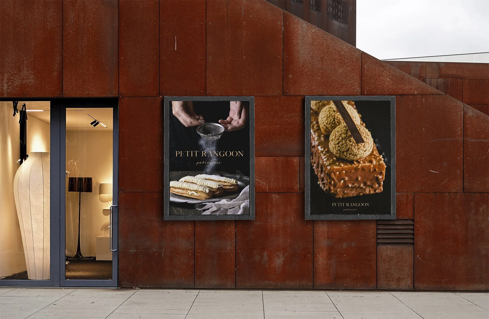 Comprehensive brand identity and packaging design for Petit Rangoon, a French patisserie in Yangon that fuses classic French pastry traditions with subtle Asian influences.